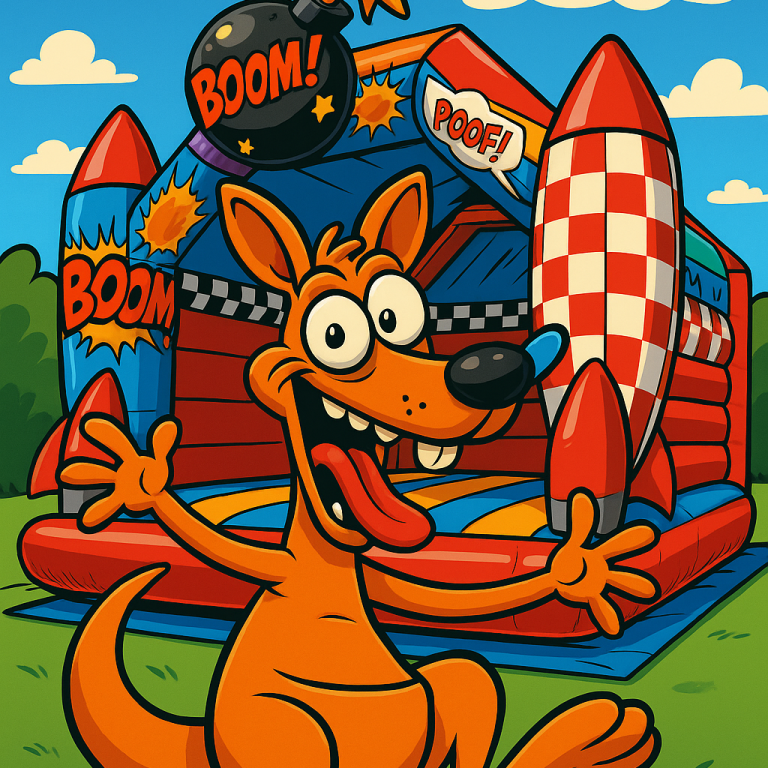 Bouncebert ist unser treuer Mitarbeiter. Obwohl er ein Bisschen doof ist, unterstützt er uns sowohl beim Auf- und Abbau unserer Hüpfburg als auch bei steuerlichen Angelegenheiten.